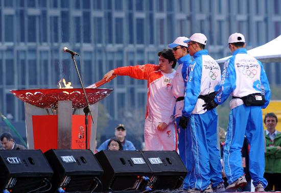 奥运火炬伊斯坦布尔传递 萨厄尔点燃圣火盆
